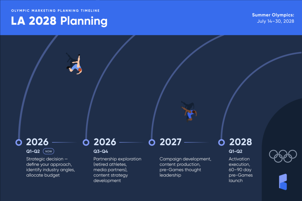 Olympics marketing that moves the needle starts 12–18 months before the Games, not during them. That means the LA 2028 Summer Olympics, happening July 14–30, need strategic marketing decisions to be made right now, in Q1–Q2 2026.